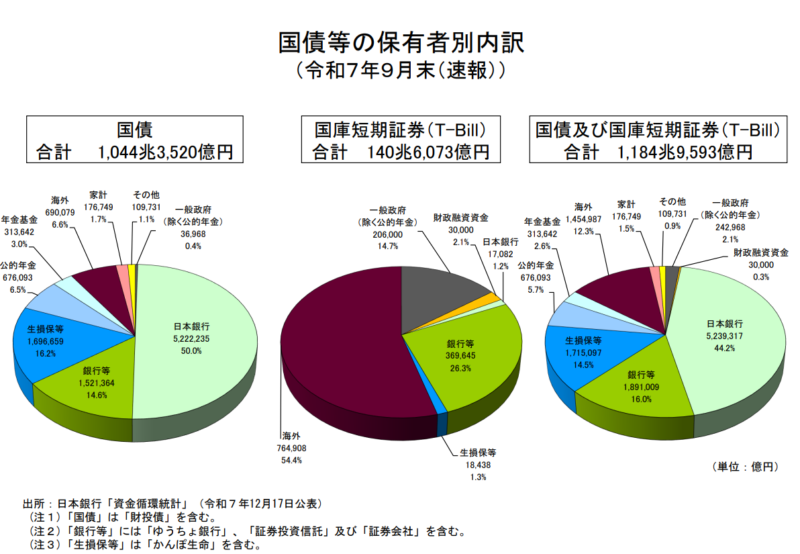• 国債の保有者は国内中心で、海外比率が突出して高いわけではない