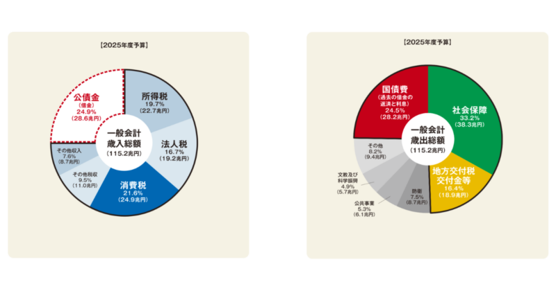 一方で、社会保障(医療・介護・年金)、教育、防災、国防など、国の支出には削りにくいものも多いのが現実です。