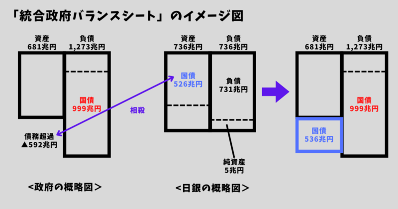 この立場でよく登場するのが「統合政府バランスシート」という考え方です。